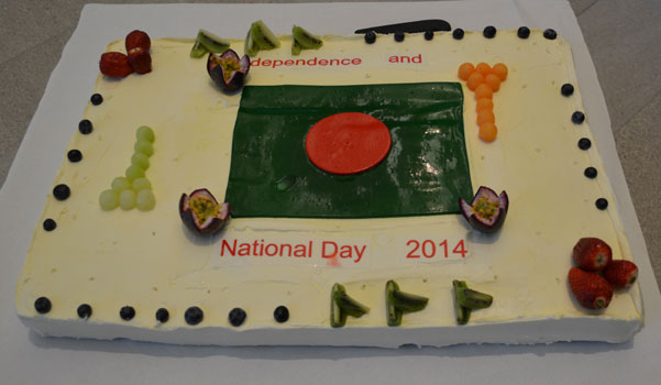 The formal part of the reception began with the best wishes of the Chief of Protocol, Ms. Sally Mansfield to the Government and people of Bangladesh on the occasion of Independence and National Day. It was reciprocated by H E High Commissioner by conveying best wishes for Her Majesty the Queen and People of Australia. After this H.E. the High Commissioner in his welcome speech paid highest tribute to the Father of the Nation Bangabandhu Sheikh Mujibur Rahman and highlighted his legendary leadership in the Historic War of Liberation in 1971. He also paid tribute to other leaders and martyrs of war of liberation. Then he highlighted the background of our Liberation War in 1971, the heinous acts of “Razakar” during the war and Bangladesh Government’s initiative for the punishment of all those offences of Crimes against Humanity and Genocide. He also thanked all members of diplomatic community as well as Bangladesh community for their valuable support in all forms. Then H.E. read out the felicitation massage of the Hon’ble Tony Abott, Prime Minister of Australia on this occasion. After the speech the High Commissioner and Chief of Protocol jointly cut the cake symbolizing long lasting bilateral relations between Bangladesh-Australia and Australia’s continuous support and contribution towards Bangladesh’s socio-economic development.